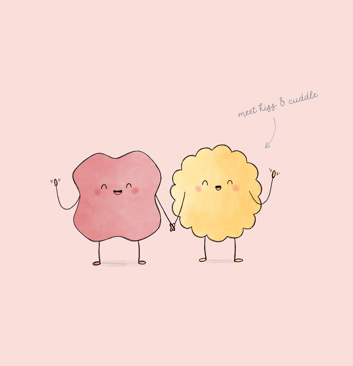 'Kiss' and 'Cuddle' are our two beloved characters, featured throughout our books and brought to life in our toys. These gorgeous guys encourage affection and help little people connect with the special people in their lives.